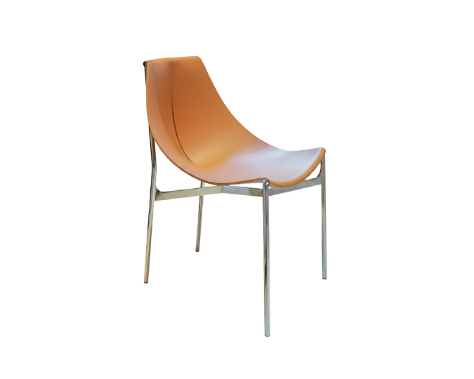 The Lyo has a tubular structure in polished chrome, and back and seat in self-supporting moulded saddle leather.